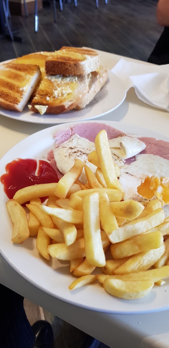 Ham Egg and Chips: A satisfying comfort food choice, this dish features tender ham, eggs cooked to your liking, and crispy chips.